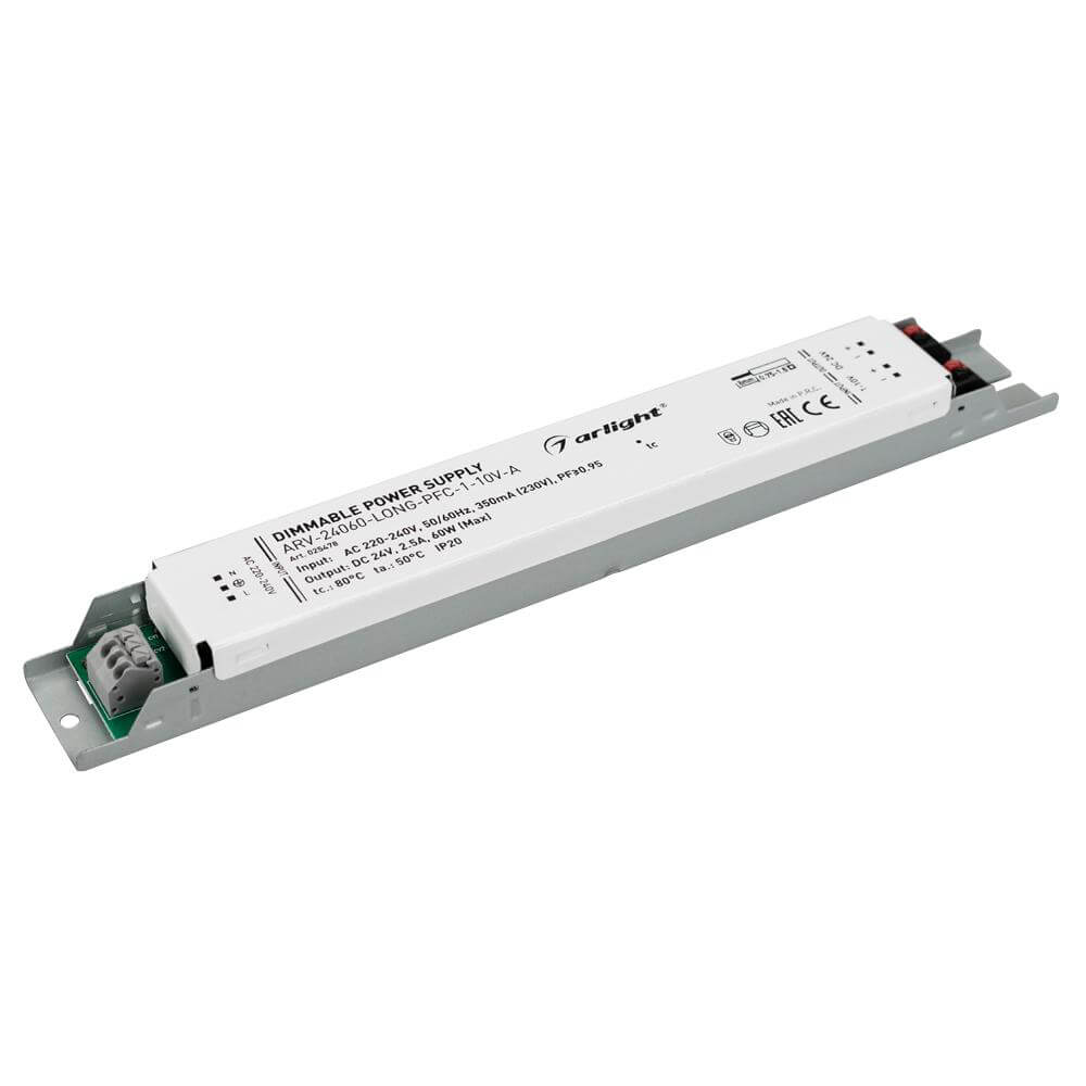 Блок питания Arlight ARV-24060-Long-PFC-1-10V-A 24V 60W IP20 2,5A 025478 купить в интернет-магазине светильников Mitris.kz!