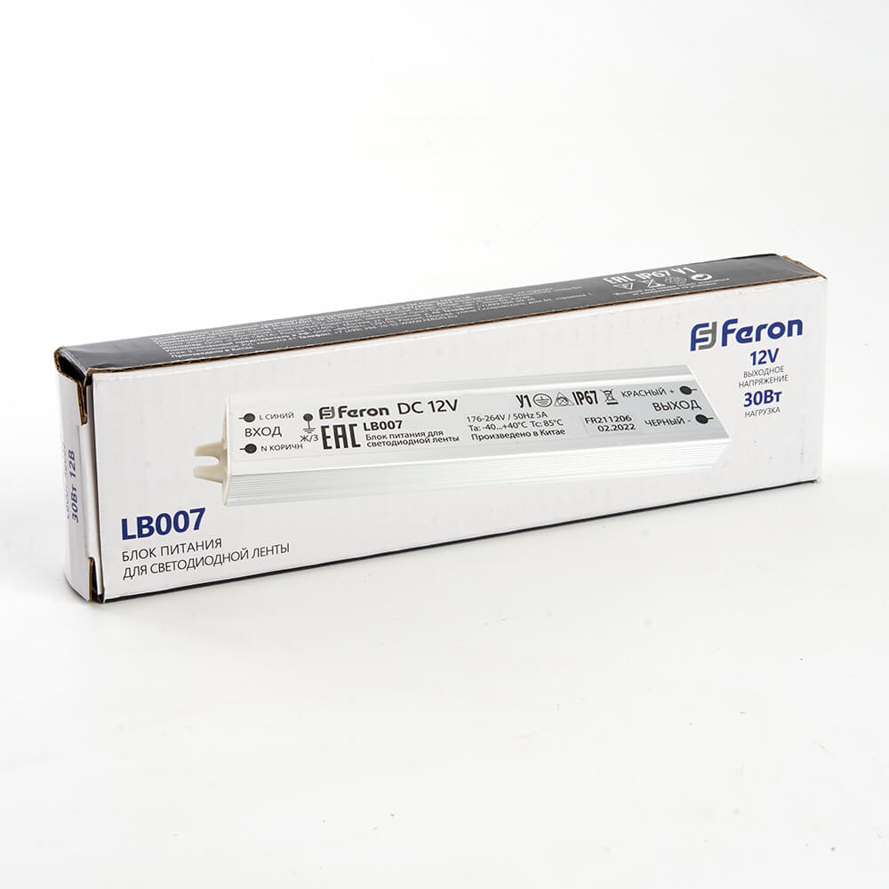 Блок питания для светодиодной ленты Feron LB007 12V 30W IP67 2,5A 48053 купить в интернет-магазине светильников Mitris.kz!