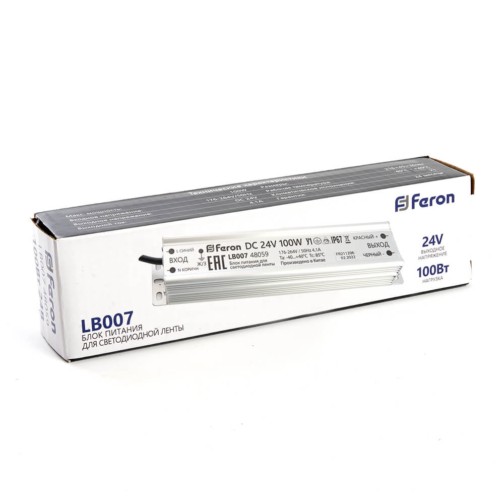 Блок питания для светодиодной ленты Feron LB007 24V 100W IP67 4,1A 48059 купить в интернет-магазине светильников Mitris.kz!