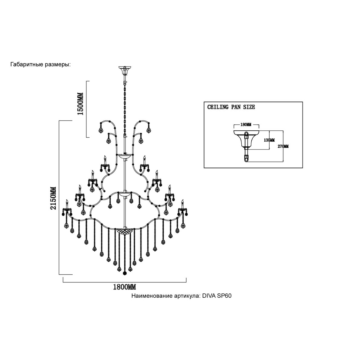 Подвесная люстра Crystal Lux Diva SP60 Chrome купить в интернет-магазине светильников Mitris.kz!