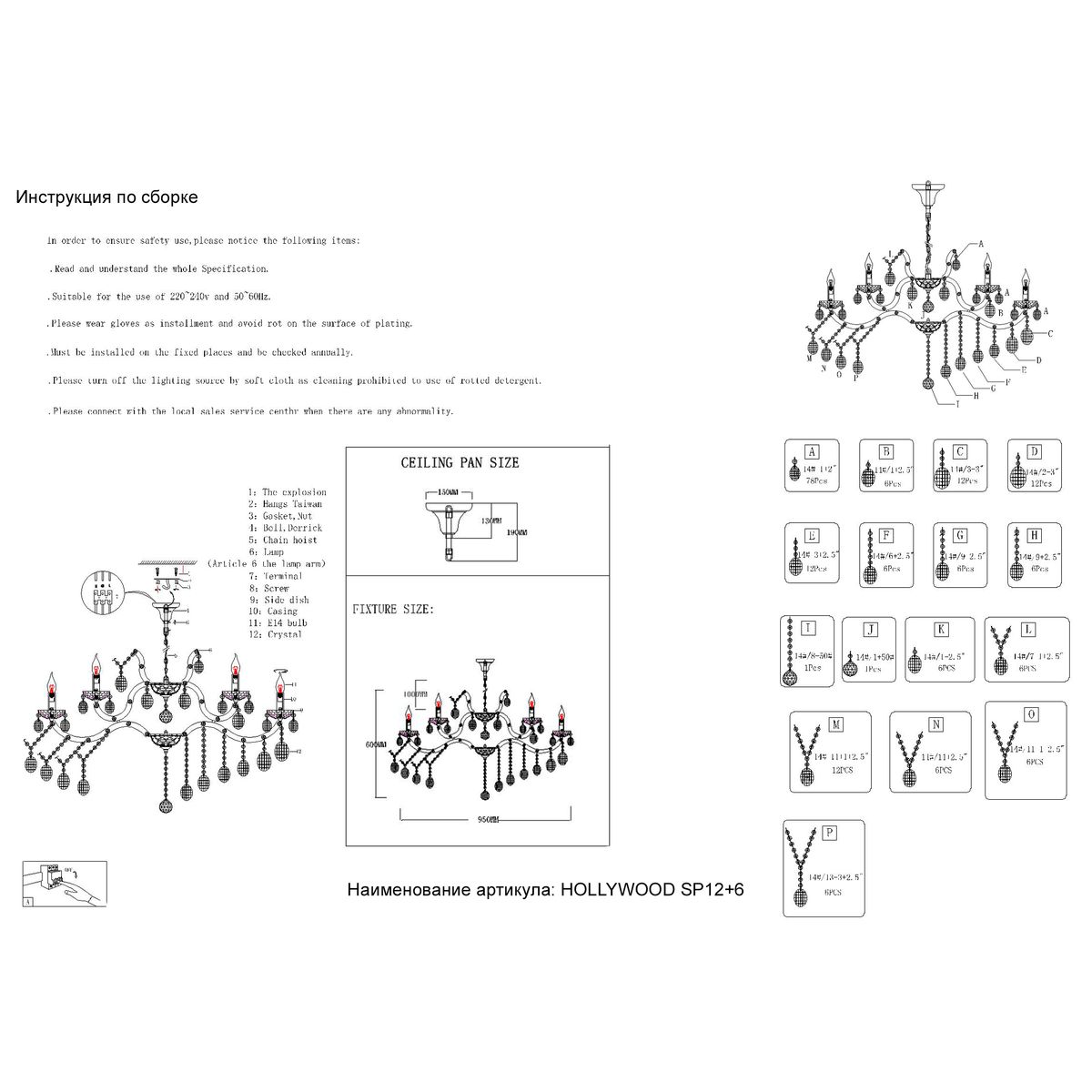 Подвесная люстра Crystal Lux Hollywood SP12+6 Chrome купить в интернет-магазине светильников Mitris.kz!