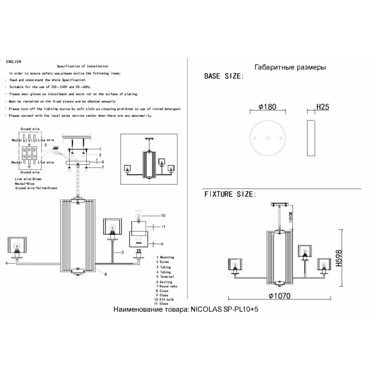 Подвесная люстра Crystal Lux Nicolas SP-PL10+5 Gold/White