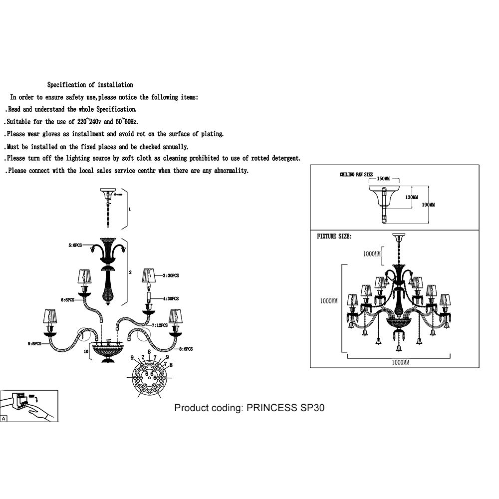 Подвесная люстра Crystal Lux Princess SP30 купить в интернет-магазине светильников Mitris.kz!