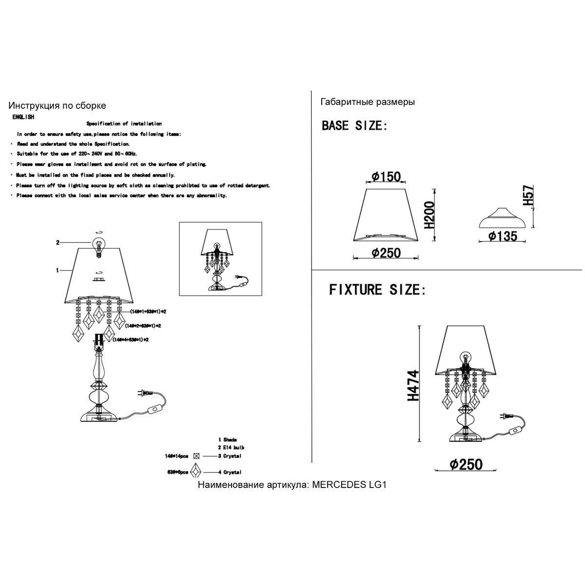 Настольная лампа Crystal Lux Mercedes LG1 Chrome/Smoke купить в интернет-магазине светильников Mitris.kz!