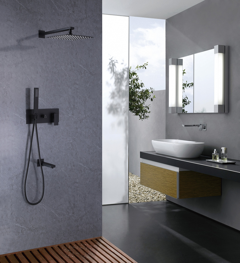 Душевая система ABBER Daheim AF8217B скрытого монтажа с изливом, черная матовая купить в интернет-магазине светильников Mitris.kz!