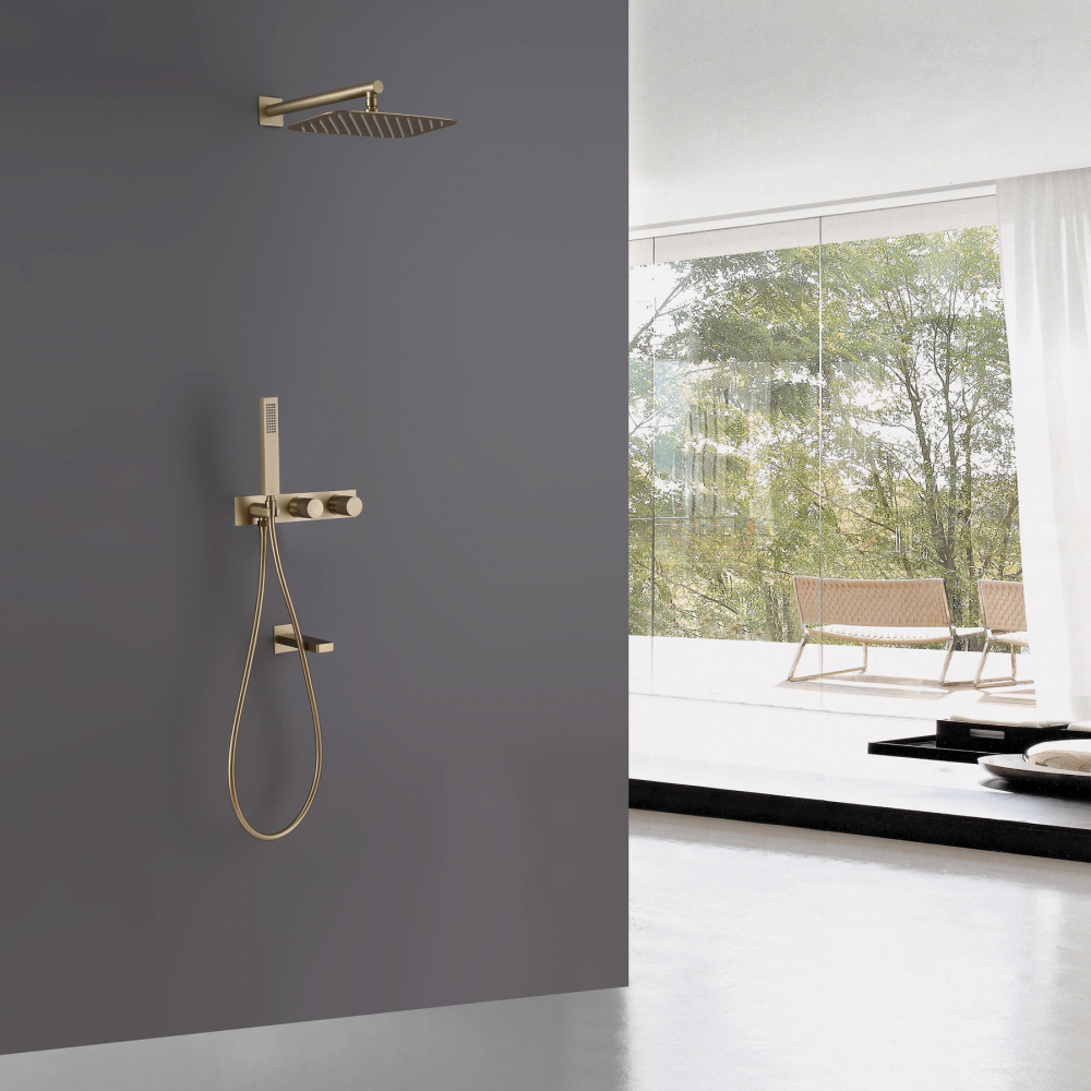 Душевая система ABBER Rund AF8717G скрытого монтажа с изливом, золотое матовое