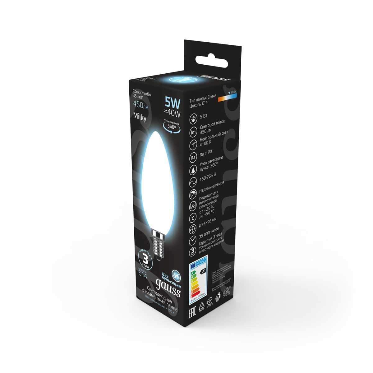 Лампа светодиодная филаментная Gauss E14 5W 4100К матовая 103201205 купить в интернет-магазине светильников Mitris.kz!