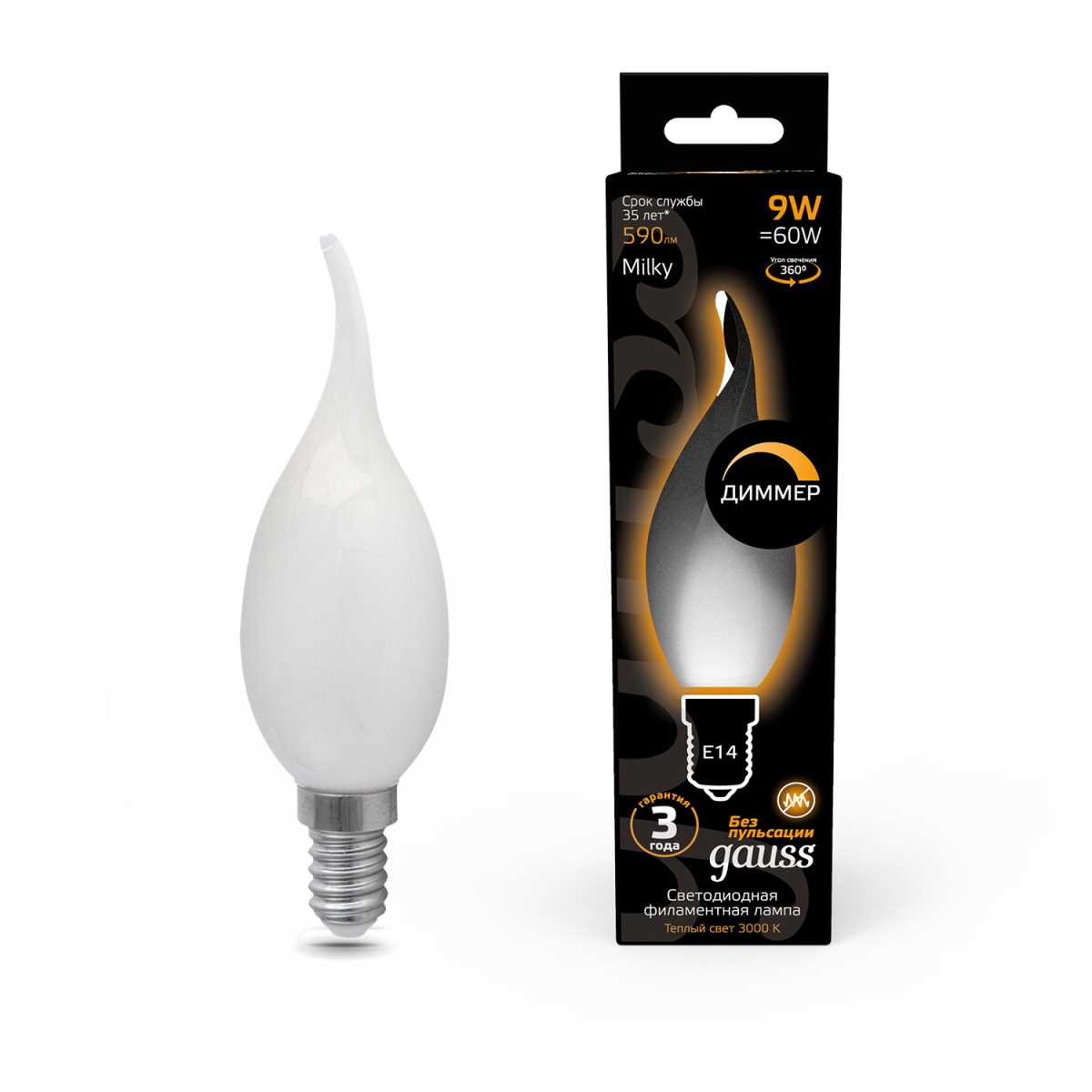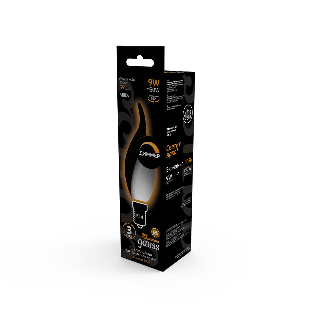 Лампа светодиодная филаментная Gauss E14 9W 3000К матовая 104201109 купить в интернет-магазине светильников Mitris.kz!