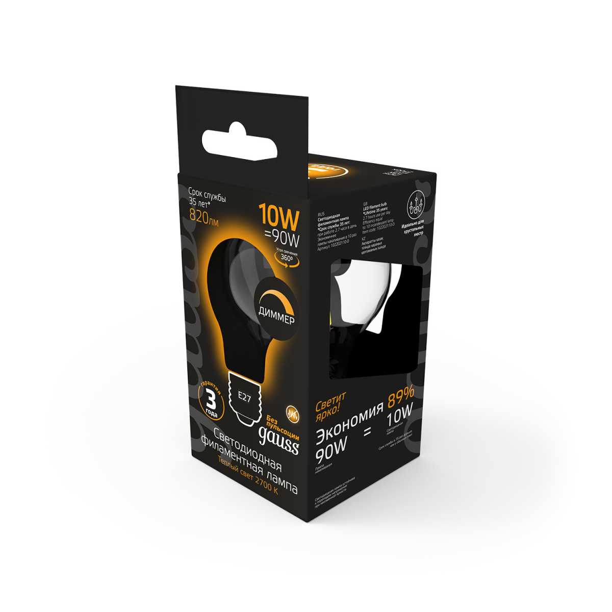 Лампа светодиодная филаментная Gauss E27 10W 2700К матовая 102202110 купить в интернет-магазине светильников Mitris.kz!