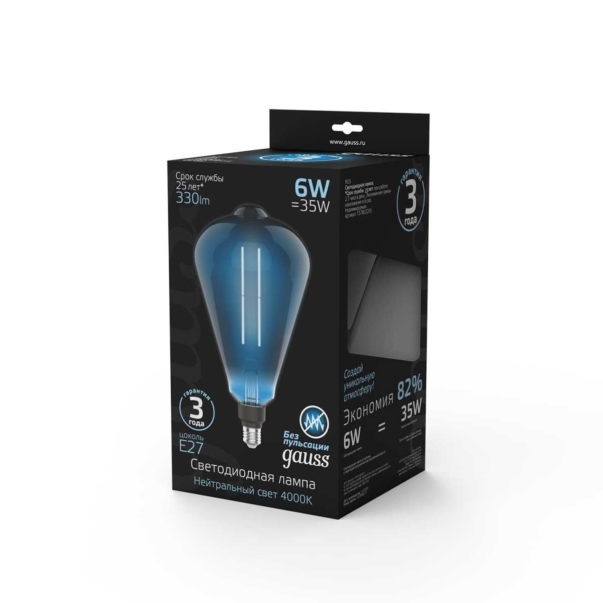 Лампа светодиодная филаментная Gauss E27 6W 4000K серая 157802205 купить в интернет-магазине светильников Mitris.kz!