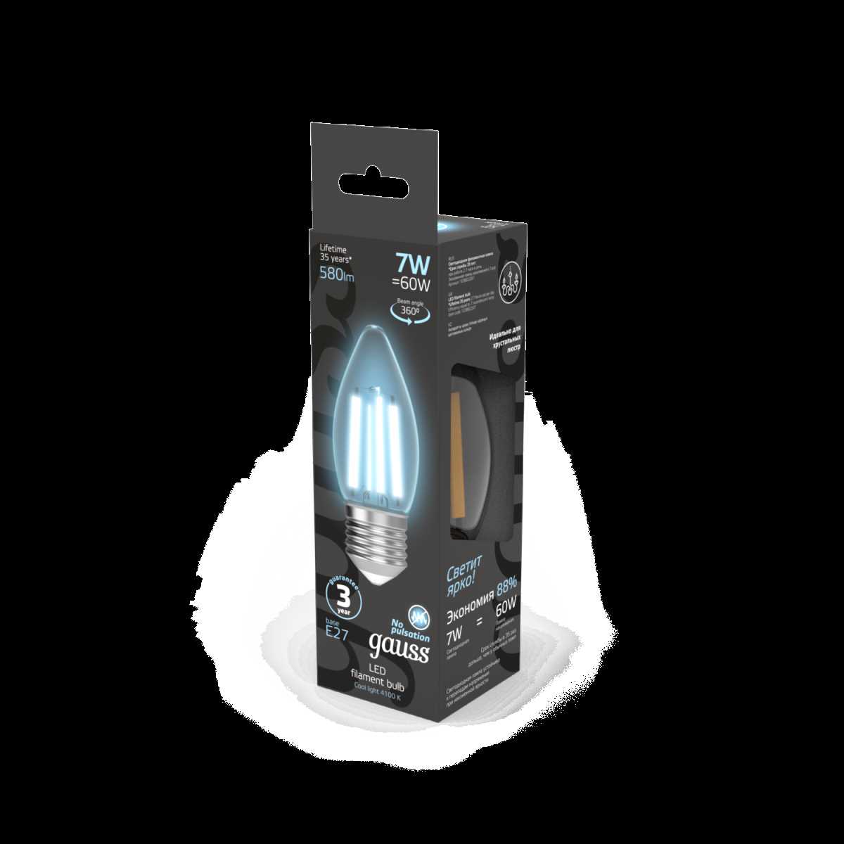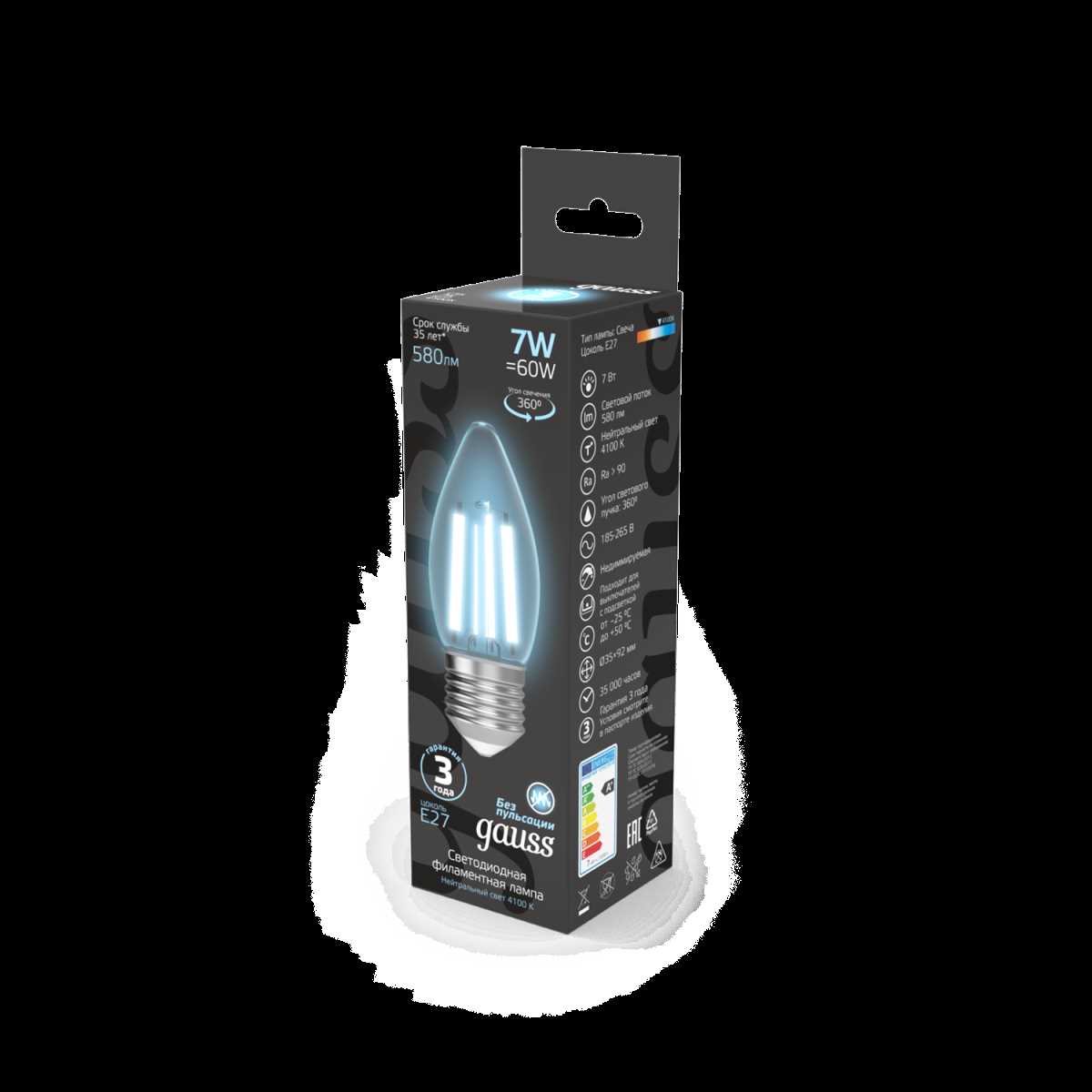 Лампа светодиодная филаментная Gauss E27 7W 4100K прозрачная 103802207 купить в интернет-магазине светильников Mitris.kz!