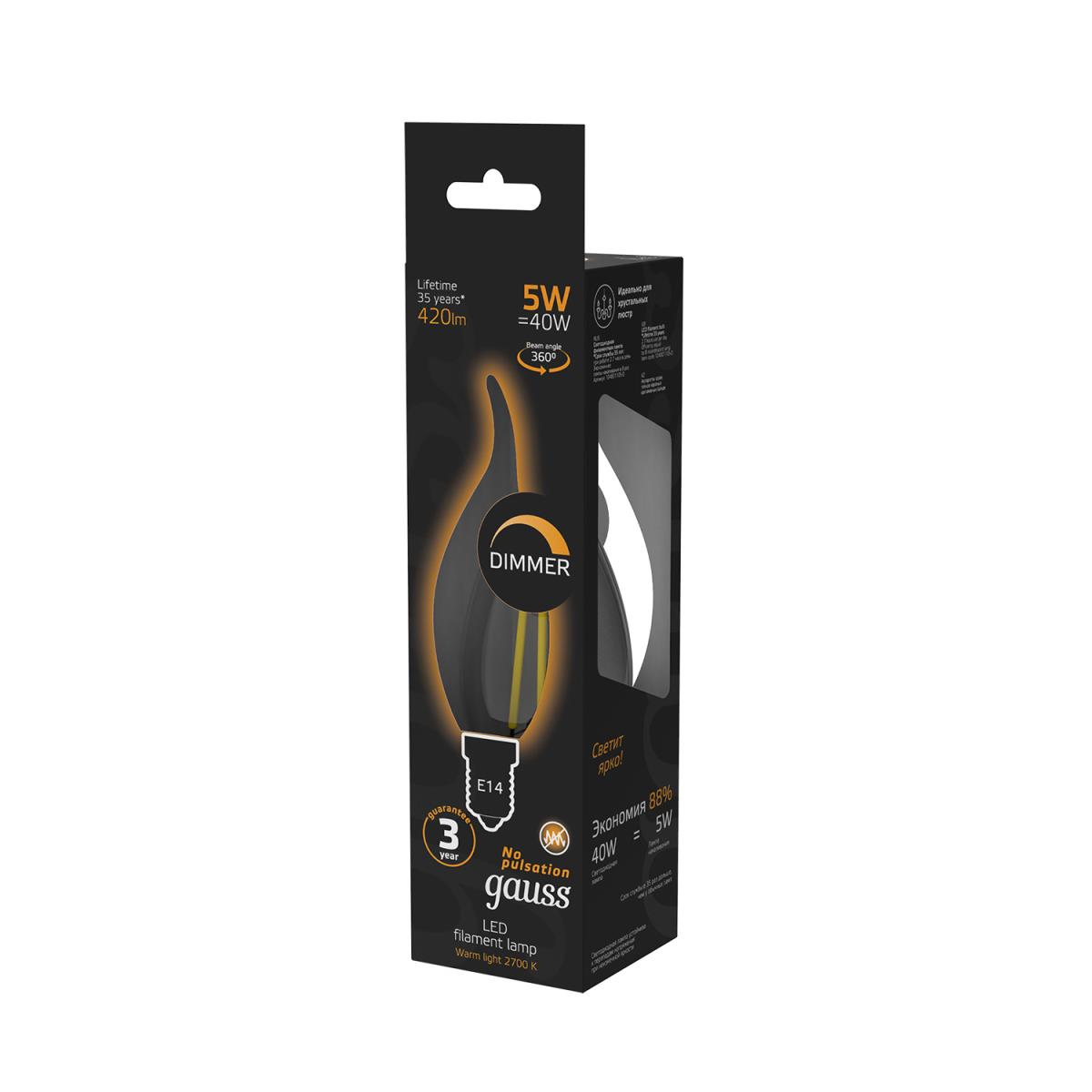 Лампа светодиодная Gauss E14 5W 2700K прозрачная 104801105 купить в интернет-магазине светильников Mitris.kz!