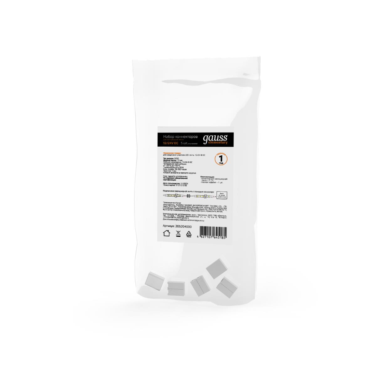 Коннектор для светодиодной ленты 5050 и 2835/120SMD Gauss (5 шт) 205204000 купить в интернет-магазине светильников Mitris.kz!