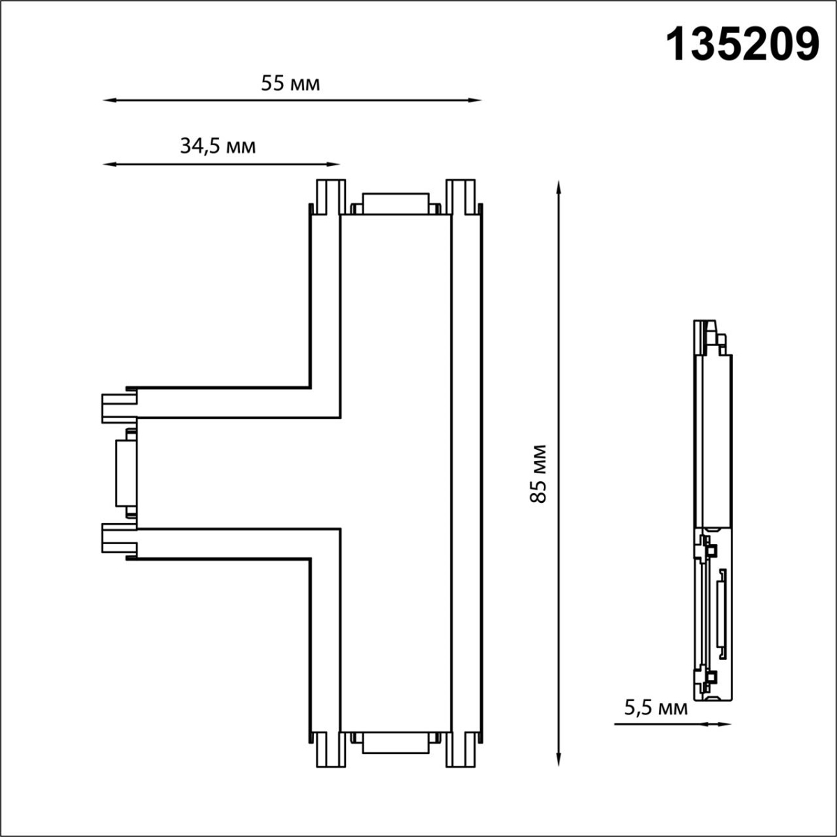 Соединитель T-образный с токопроводом для низковольтного шинопровода Novotech Shino Smal 135209 купить в интернет-магазине светильников Mitris.kz!