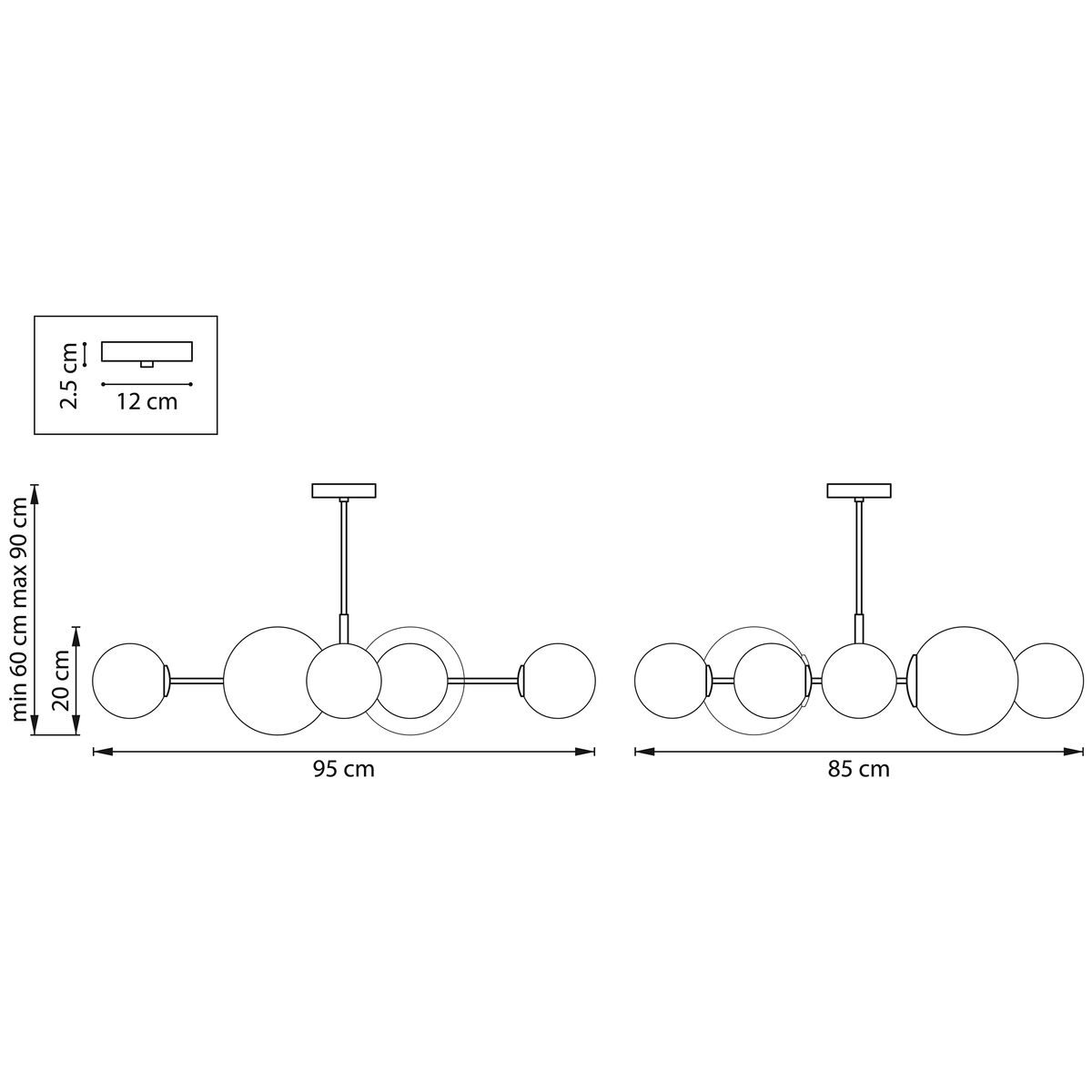 Длина подвеса, мм: