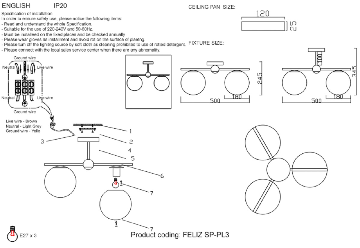Потолочная люстра Crystal Lux FELIZ SP-PL3 BRONZE/WHITE