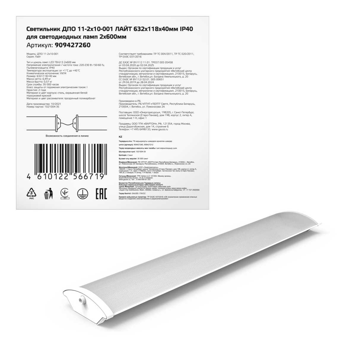 Настенно-потолочный светильник Gauss 909427260 купить в интернет-магазине светильников Mitris.kz!