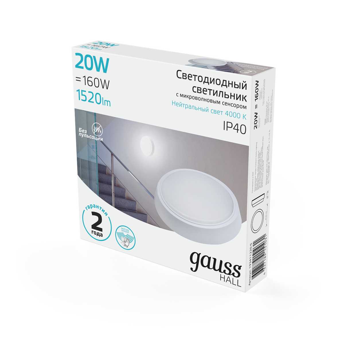 Настенно-потолочный светодиодный светильник Gauss Hall 193411220 купить в интернет-магазине светильников Mitris.kz!