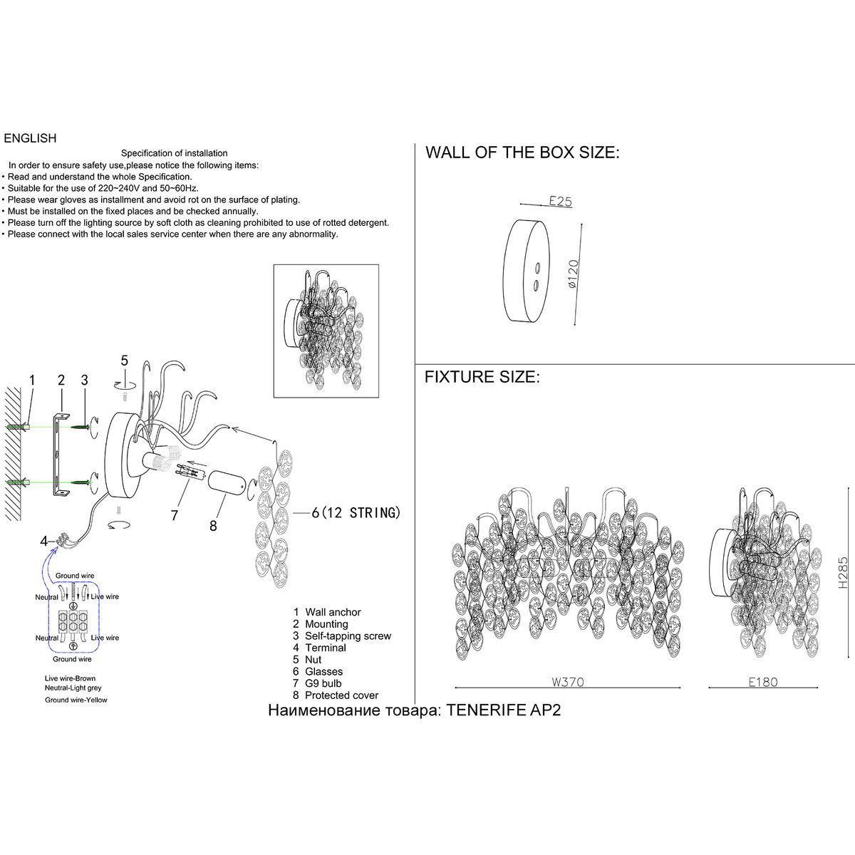 Настенный светильник Crystal Lux Tenerife AP2 Silver купить в интернет-магазине светильников Mitris.kz!