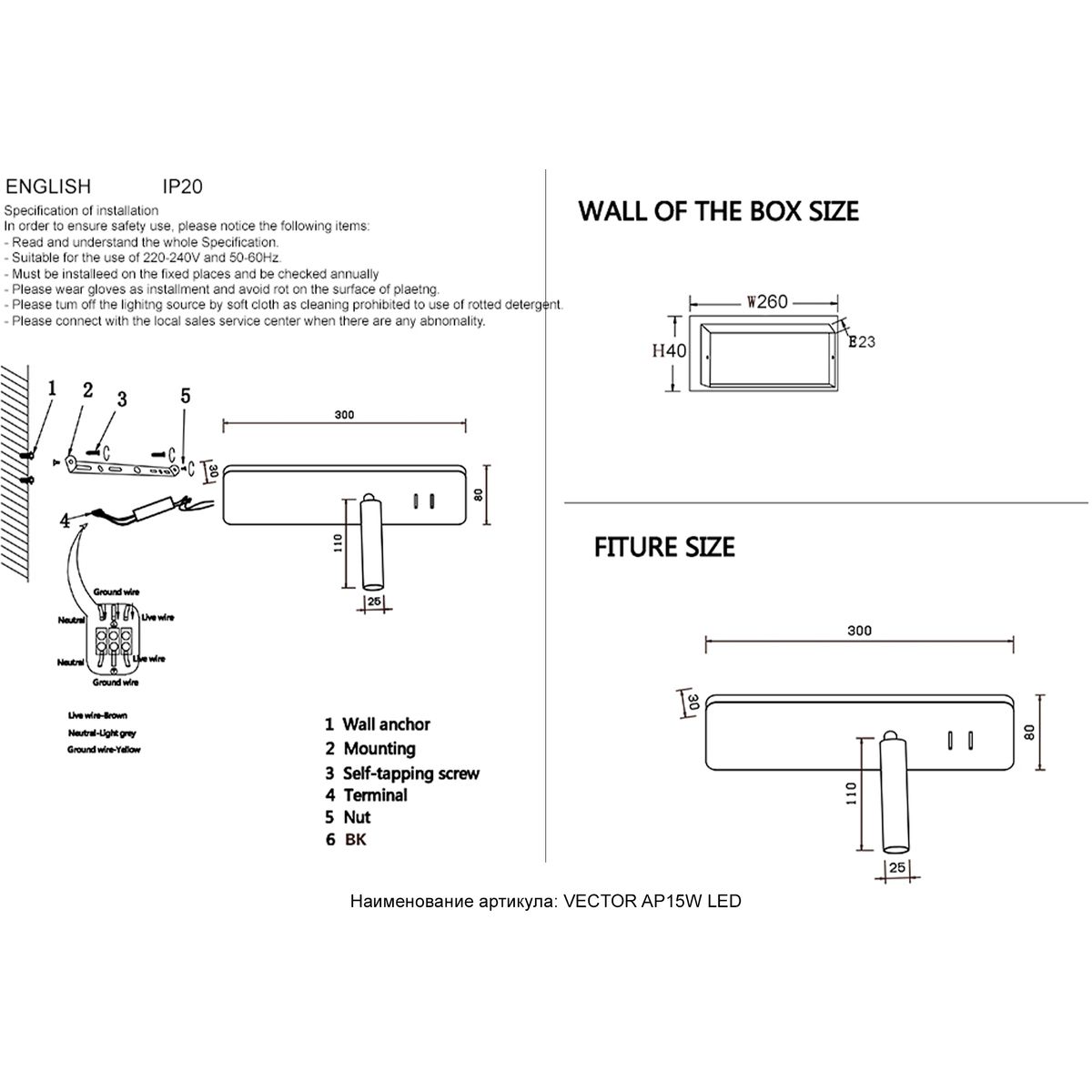 Артикул: VECTOR AP15W LED WH