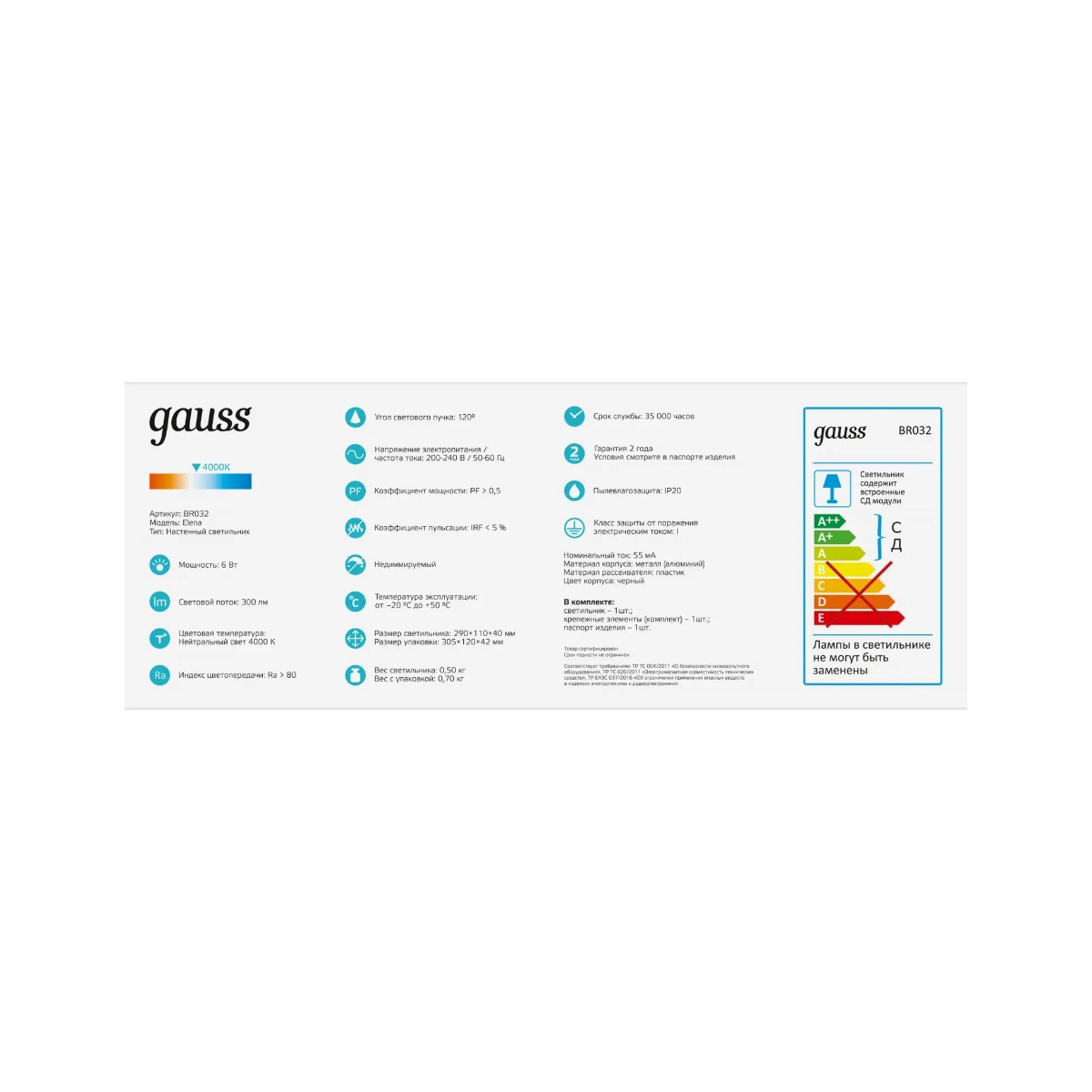 Настенный светодиодный светильник Gauss Elena BR032 купить в интернет-магазине светильников Mitris.kz!