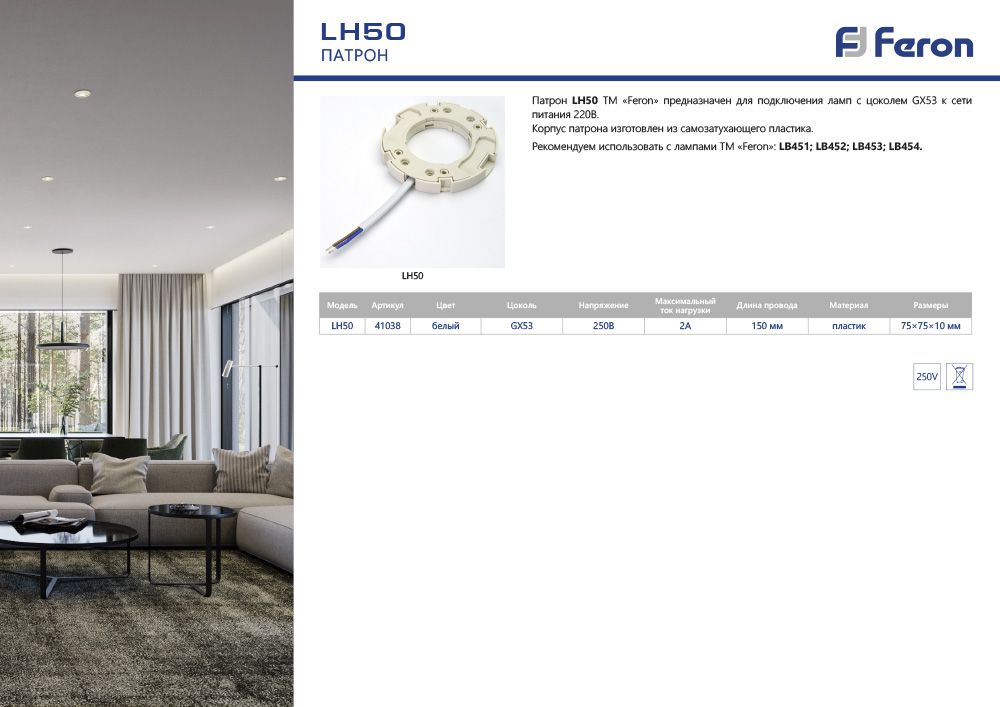 Патрон для ламп Feron LH50 41038 купить в интернет-магазине светильников Mitris.kz!
