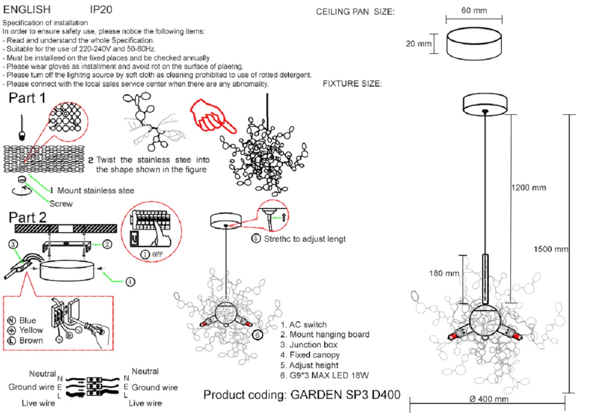 Подвесной светильник Crystal Lux GARDEN SP3 D400 CHROME купить в интернет-магазине светильников Mitris.kz!