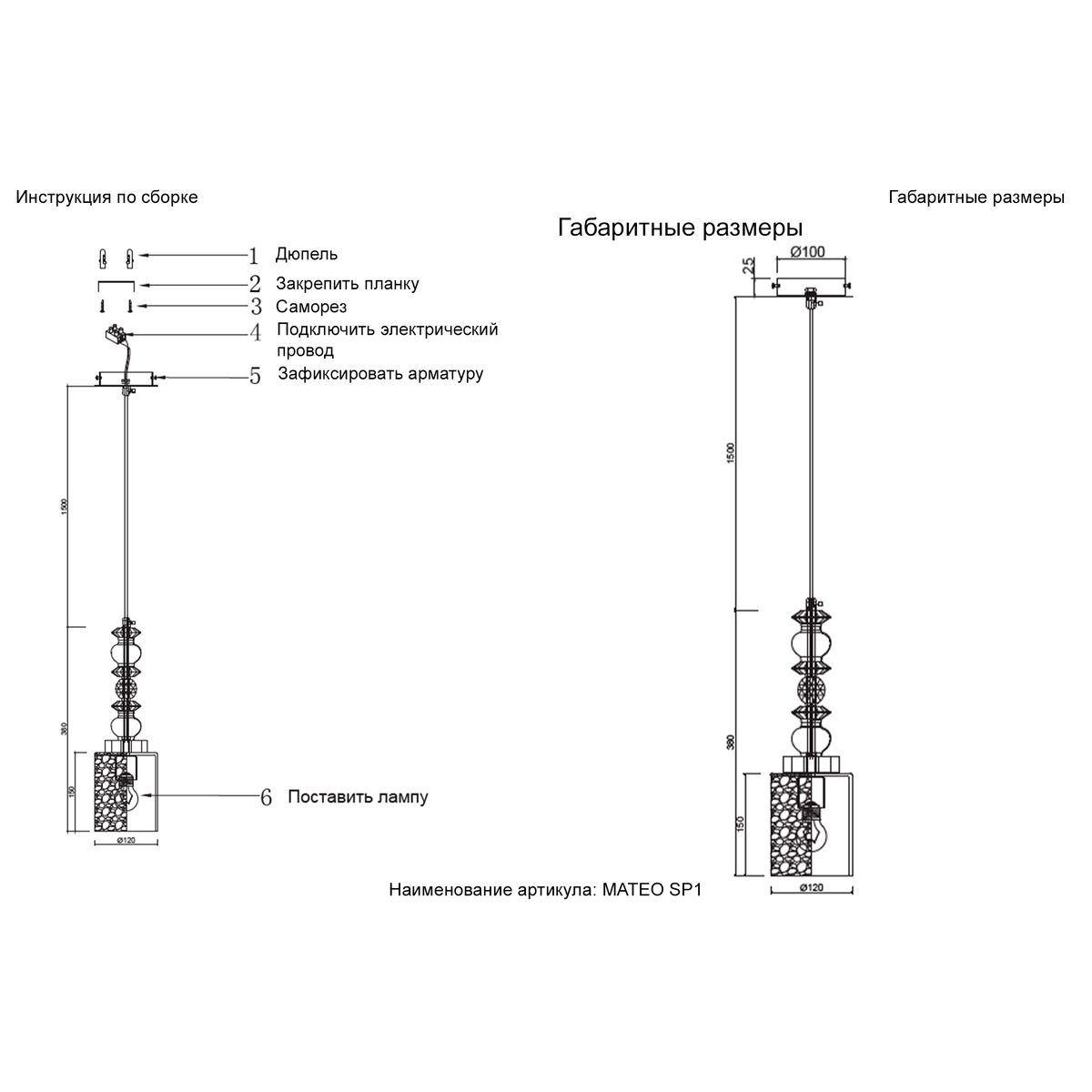 Длина подвеса, мм: