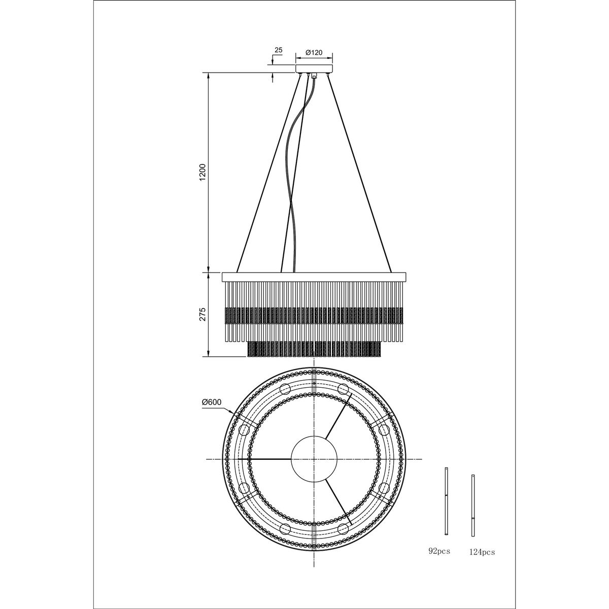 Длина подвеса, мм: