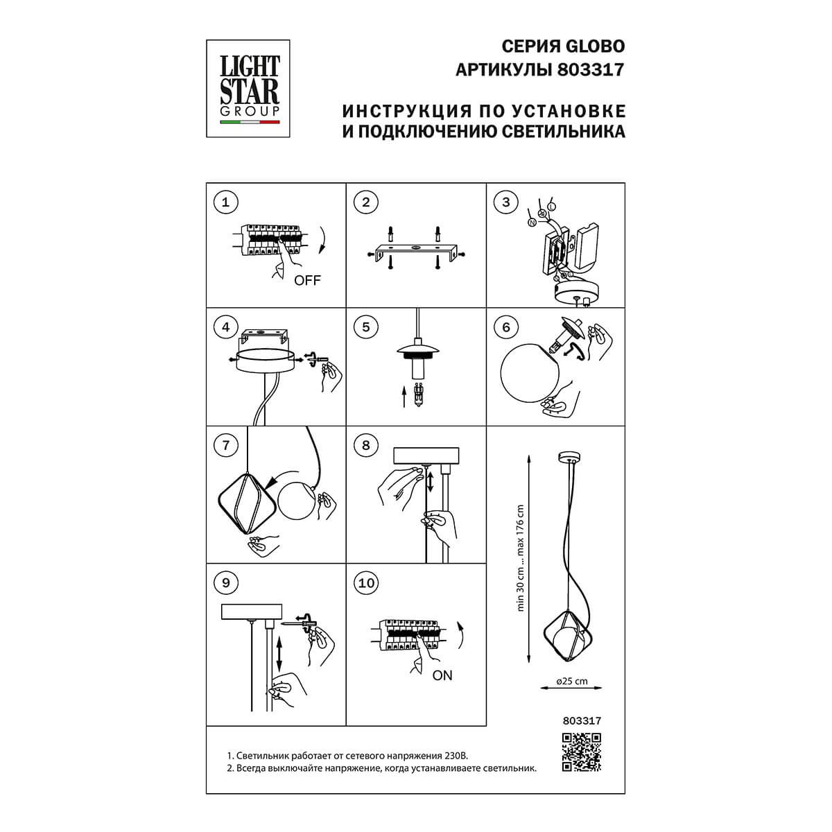 Подвесной светильник Lightstar Globo 803317 купить в интернет-магазине светильников Mitris.kz!
