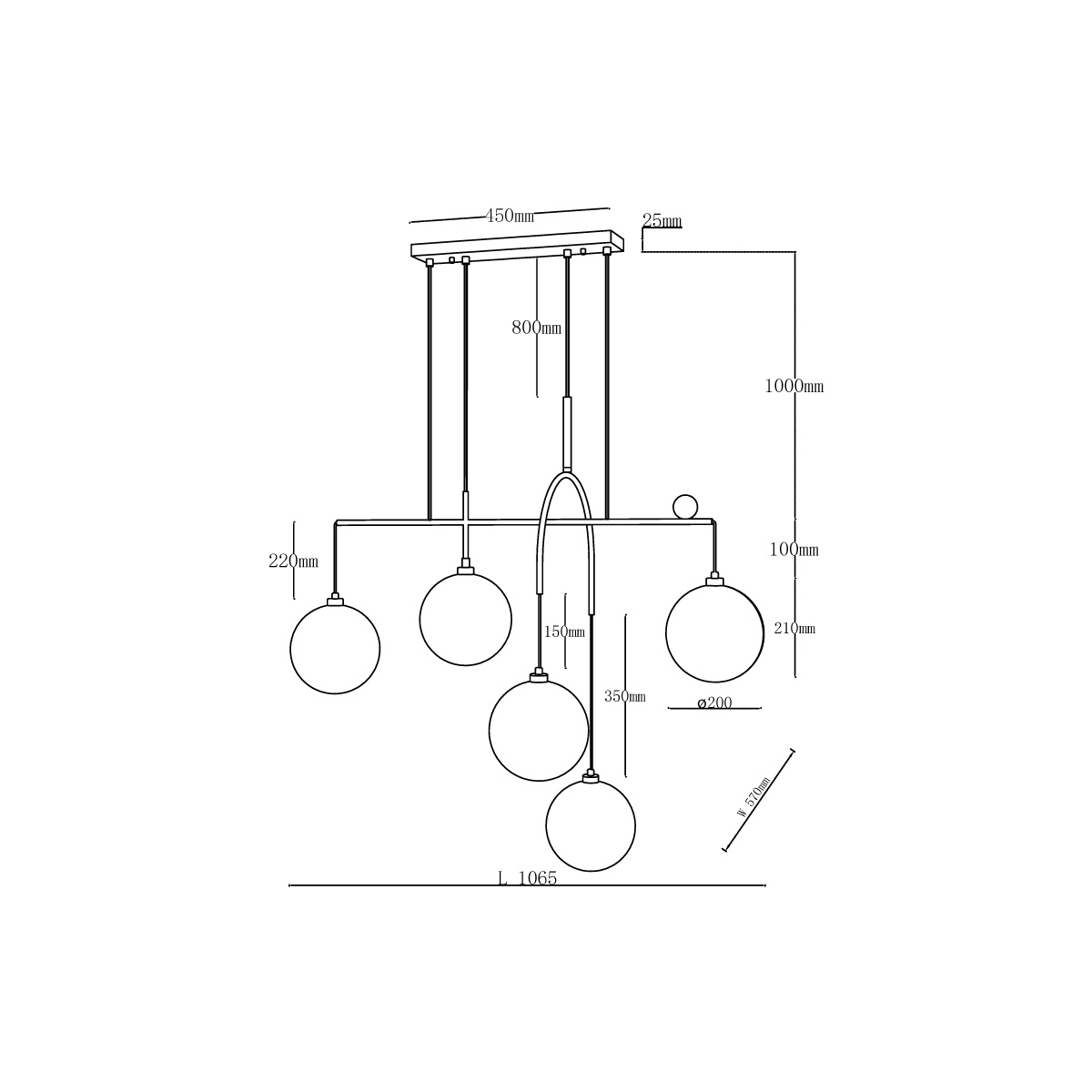 Длина подвеса, мм: