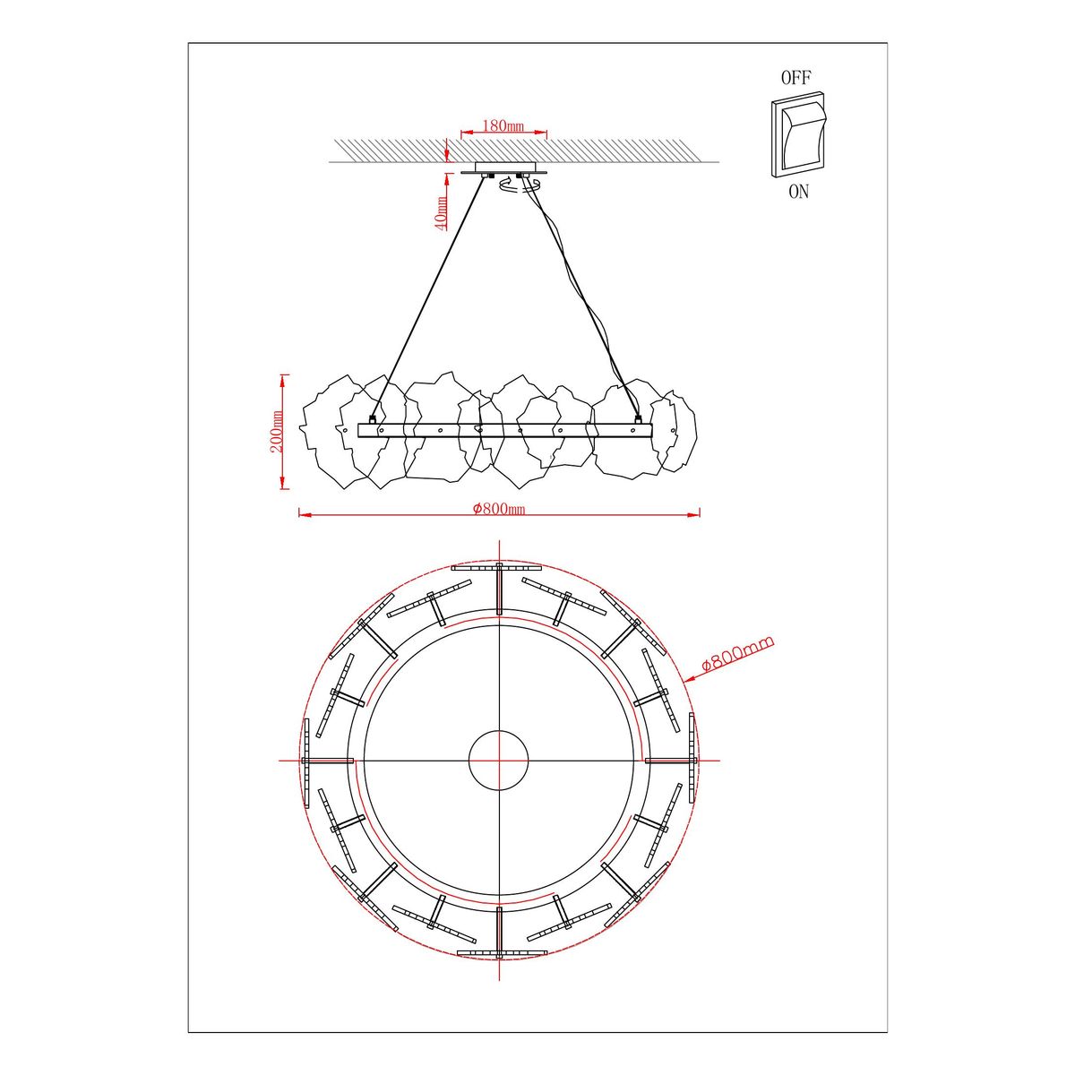 Длина подвеса, мм: