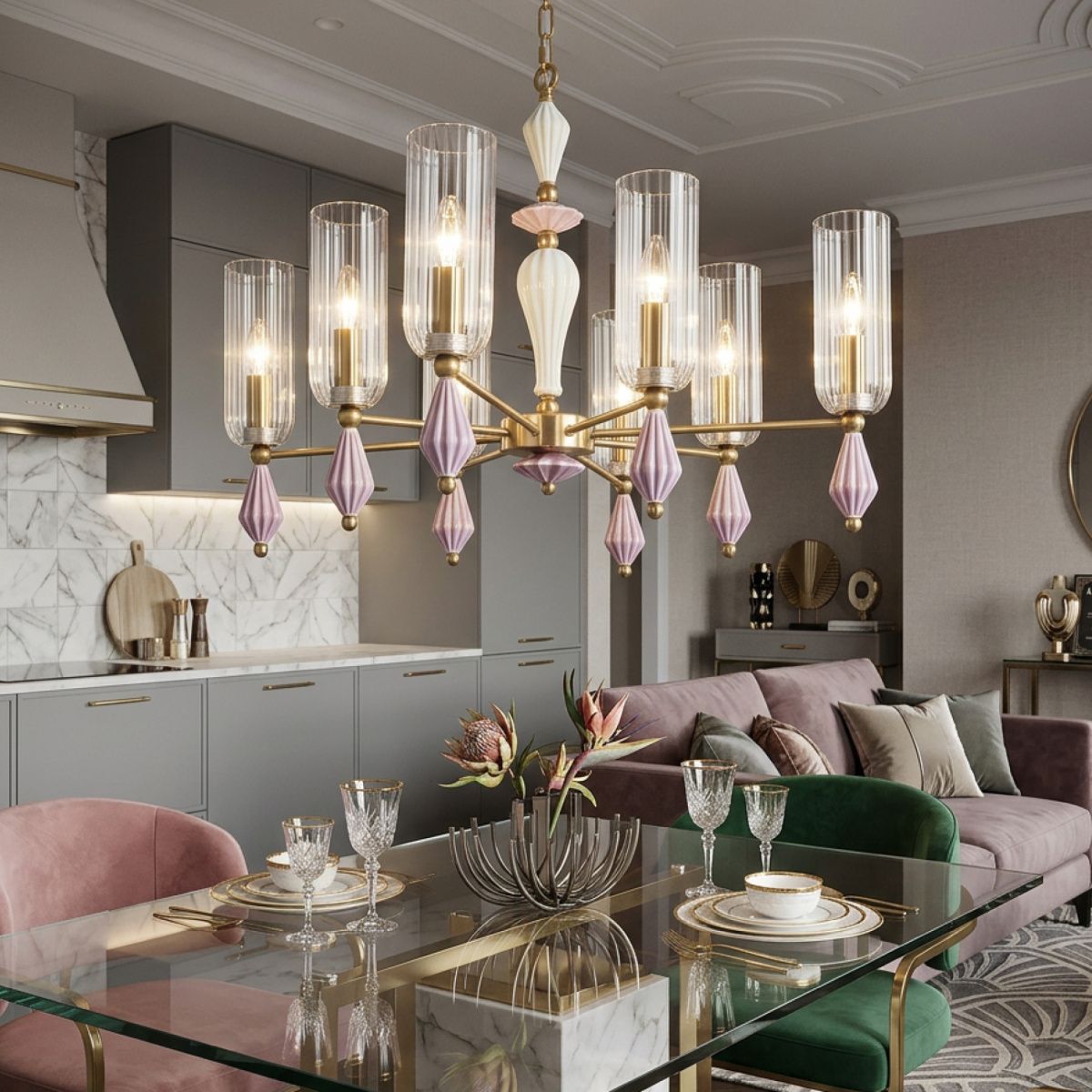 • Подвесные, потолочные люстры;