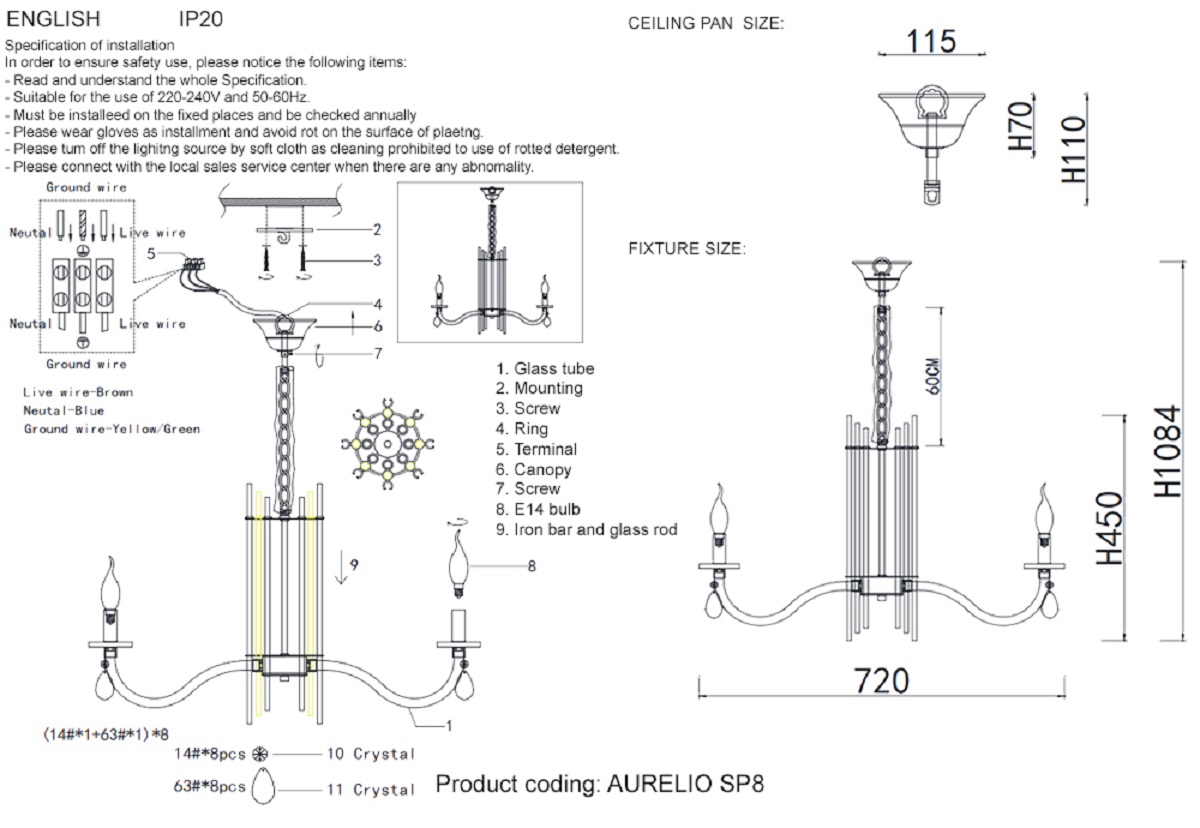 Подвесная люстра Crystal Lux AURELIO SP8 GOLD+CHROME/TRANSPARENT