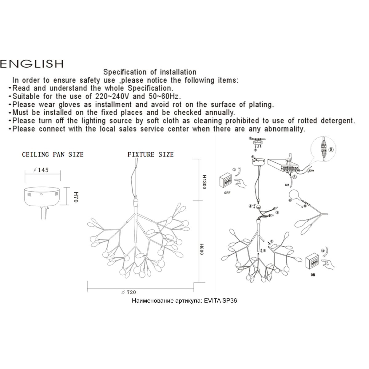 Подвесная люстра Crystal Lux Evita SP36 Black/Transparent купить в интернет-магазине светильников Mitris.kz!