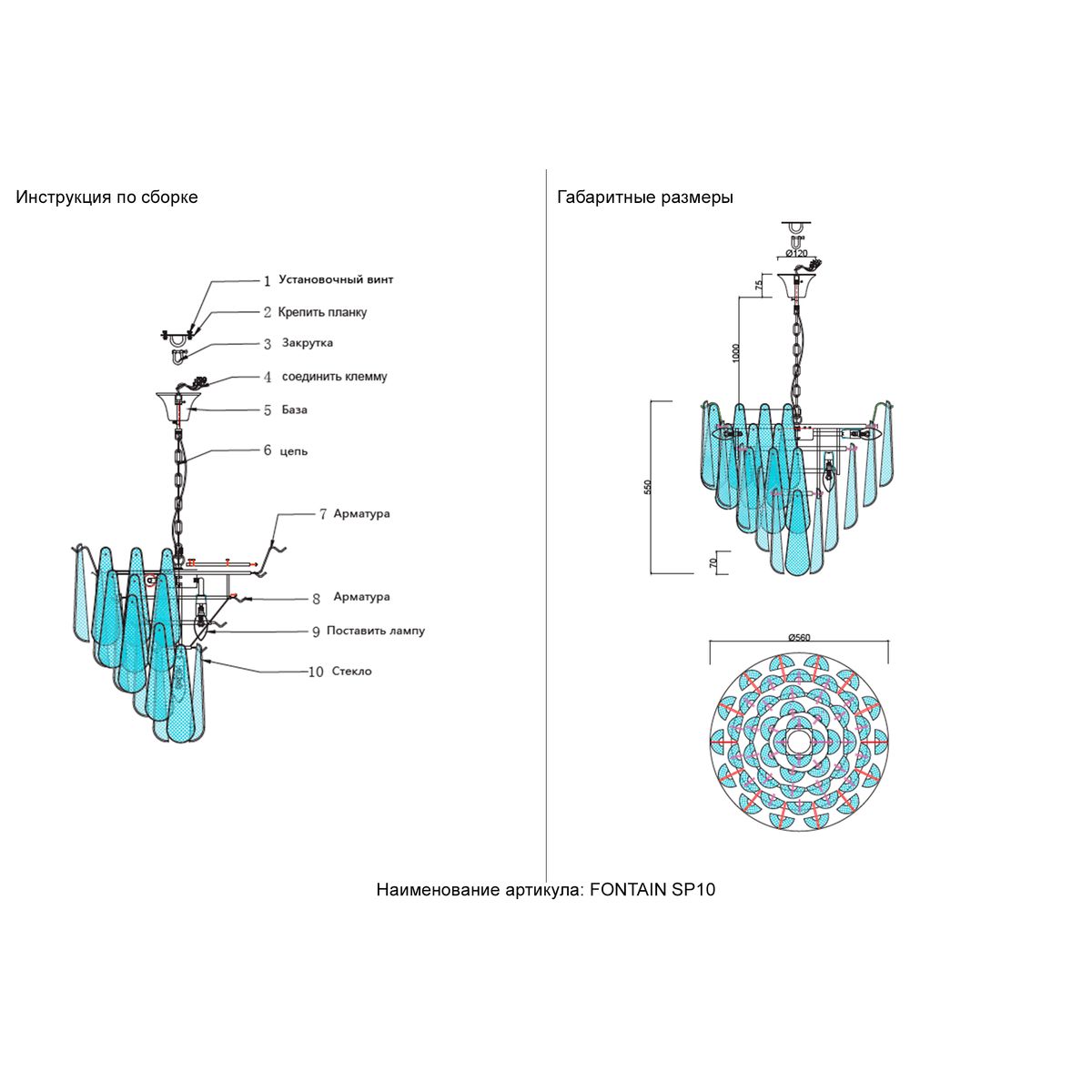 Подвесная люстра Crystal Lux FONTAIN SP10 CHROME купить в интернет-магазине светильников Mitris.kz!