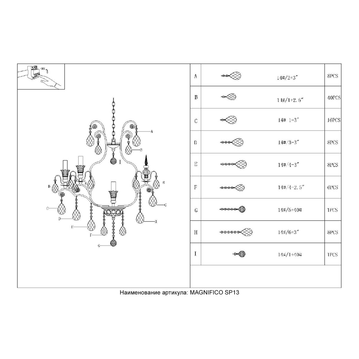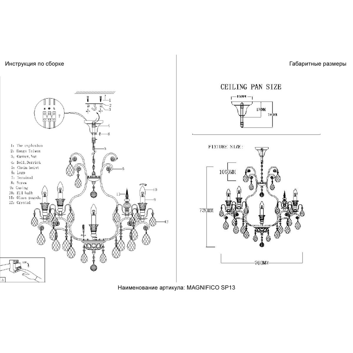 Подвесная люстра Crystal Lux Magnifico SP13 Black/Transparent купить в интернет-магазине светильников Mitris.kz!