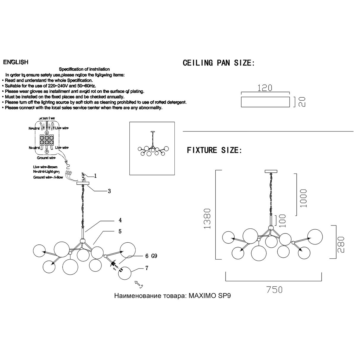 Подвесная люстра Crystal Lux MAXIMO SP9 BRONZE купить в интернет-магазине светильников Mitris.kz!