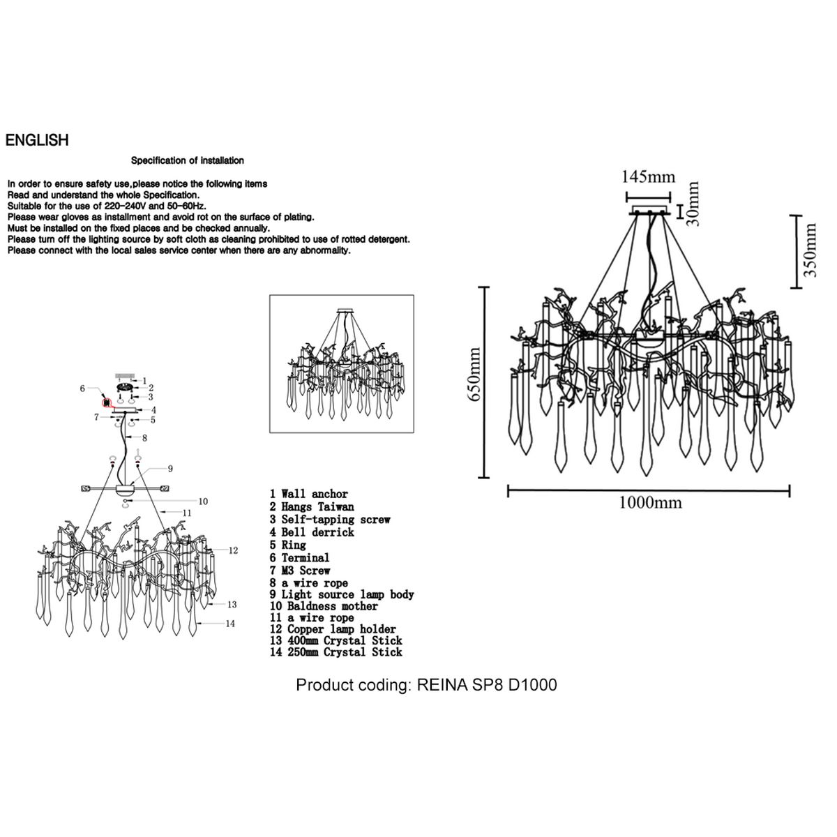 Длина подвеса, мм: