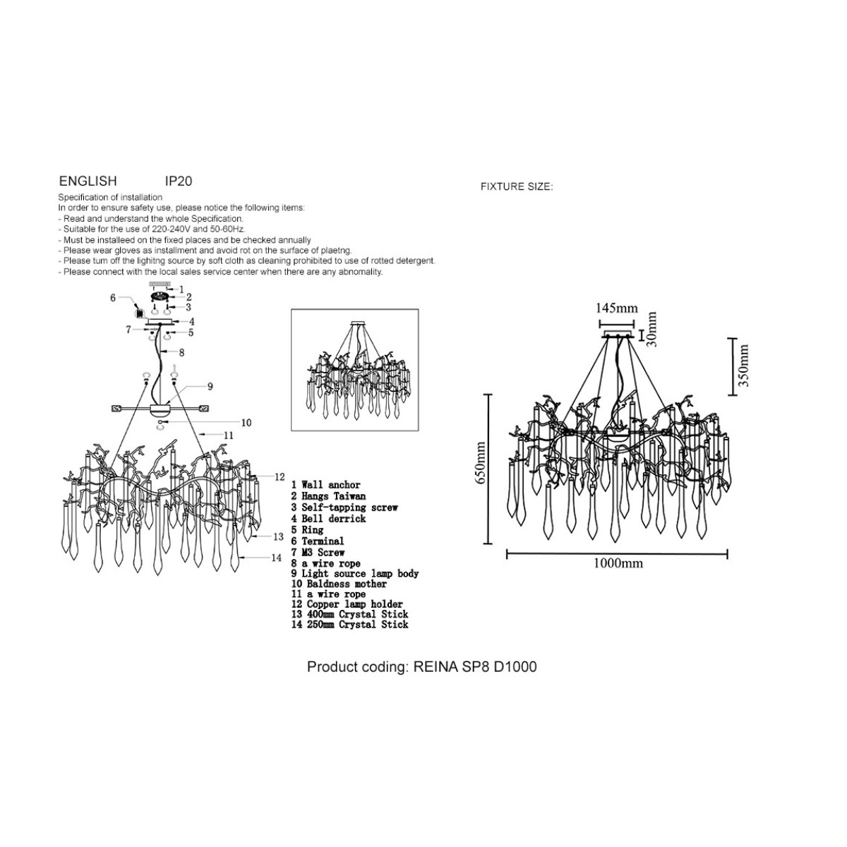 Подвесная люстра Crystal Lux REINA SP8 D1000 SILVER PATINA купить в интернет-магазине светильников Mitris.kz!