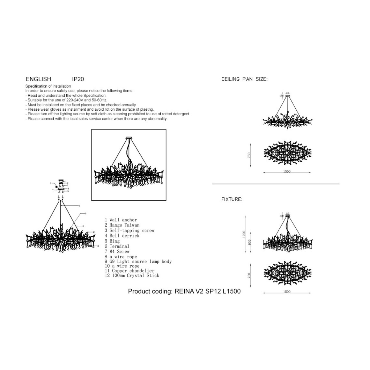 Подвесная люстра Crystal Lux REINA V2 SP12 L1500 GOLD PEARL купить в интернет-магазине светильников Mitris.kz!