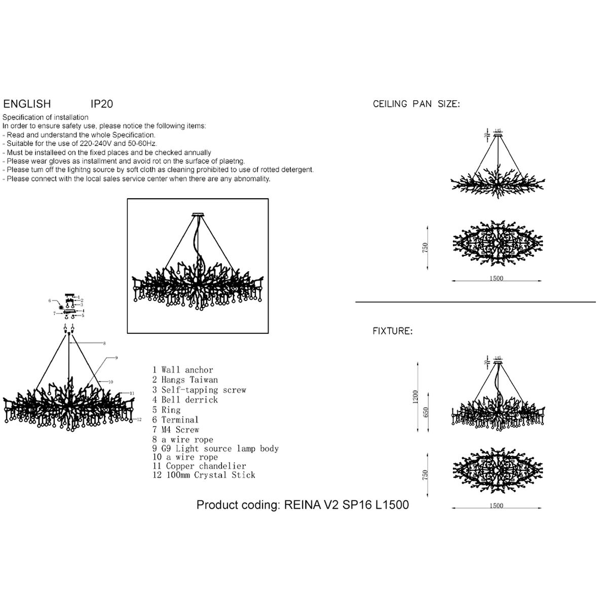 Подвесная люстра Crystal Lux REINA V2 SP16 L1500 GOLD PEARL купить в интернет-магазине светильников Mitris.kz!