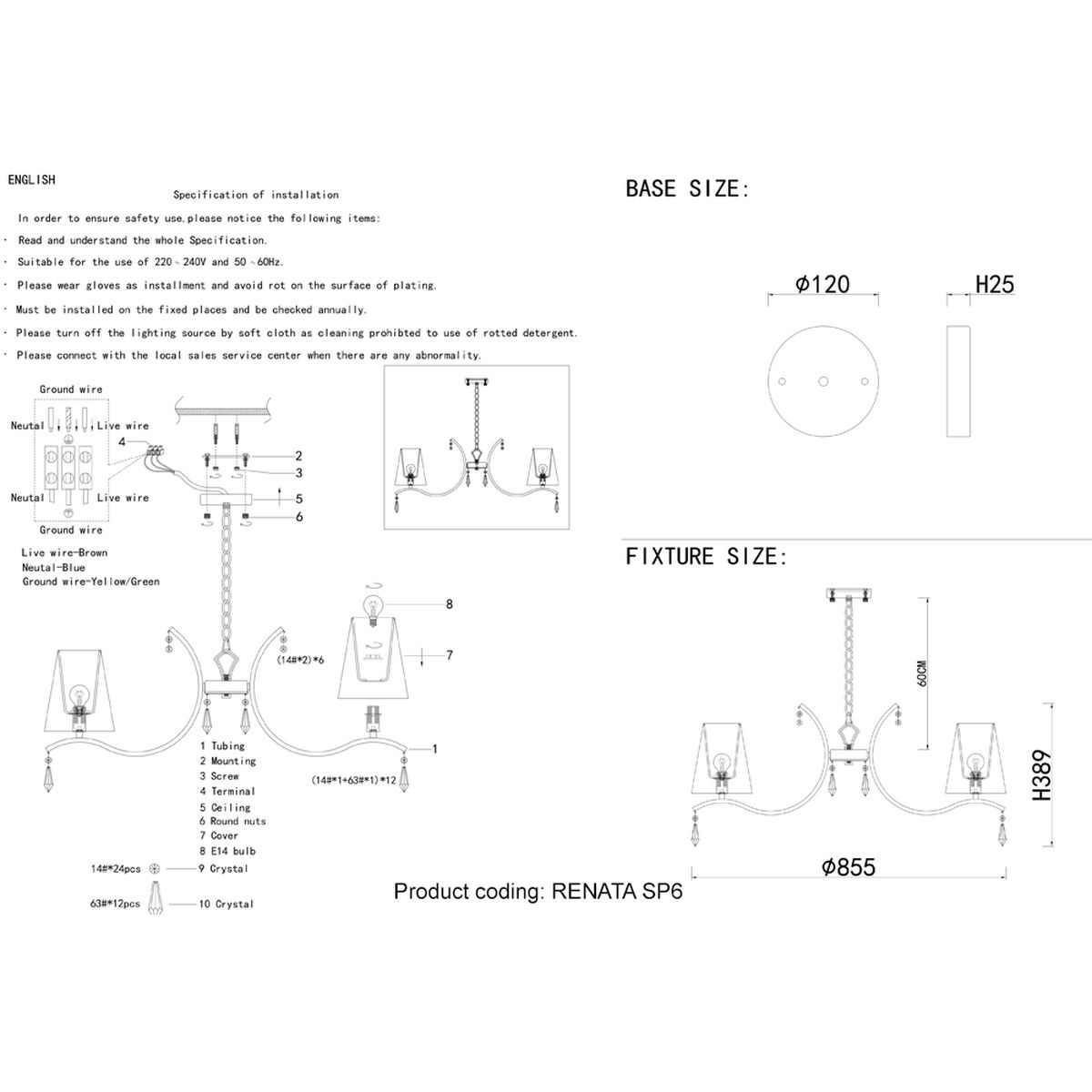 Подвесная люстра Crystal Lux Renata SP6 Gold купить в интернет-магазине светильников Mitris.kz!