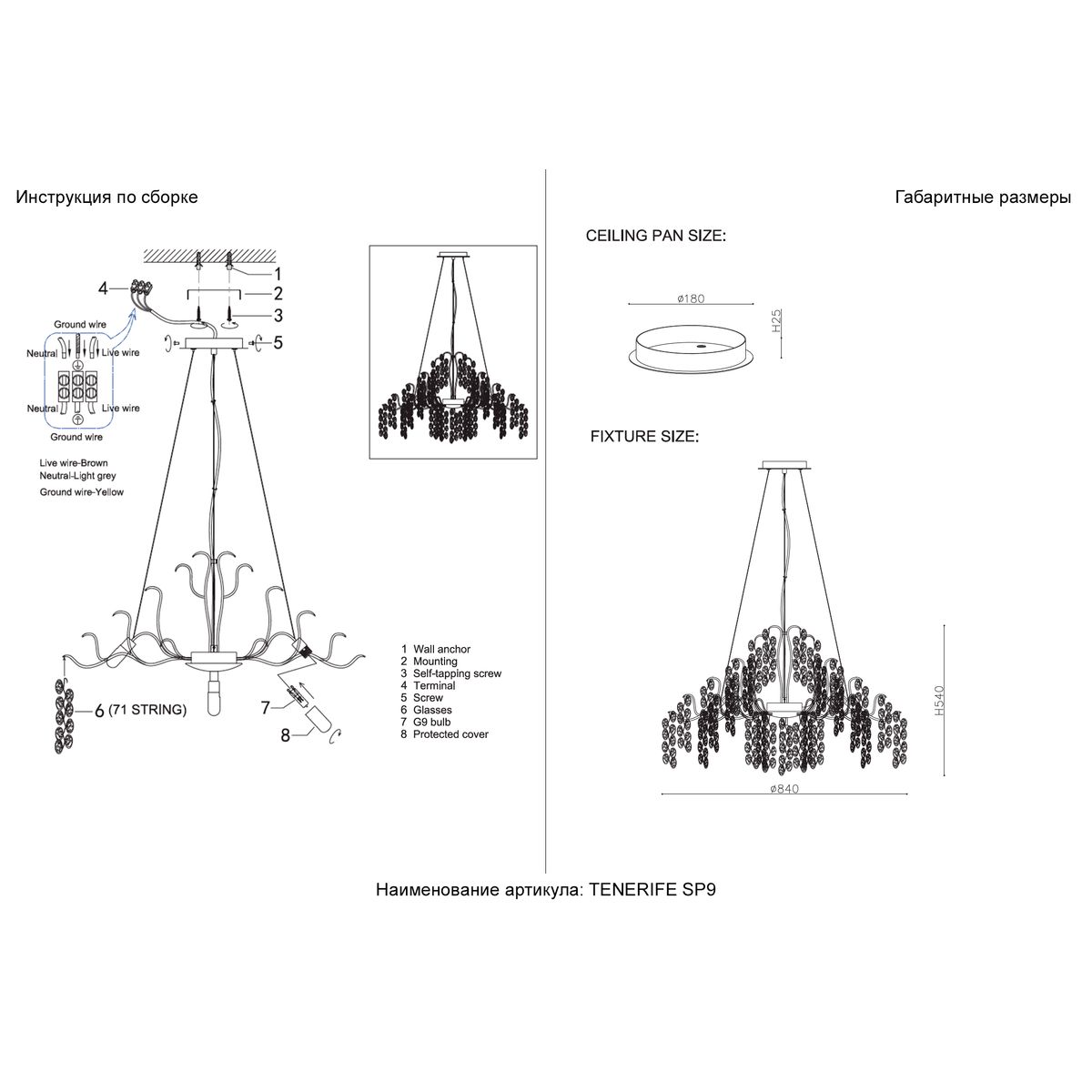 Подвесная люстра Crystal Lux Tenerife SP9 Silver купить в интернет-магазине светильников Mitris.kz!