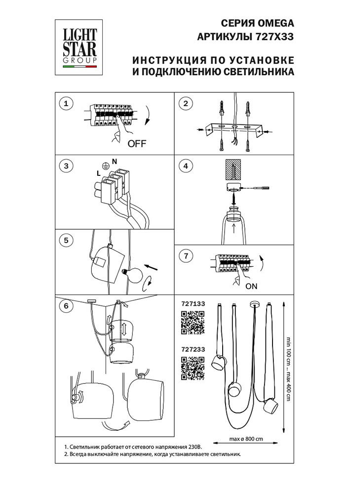 Подвесная люстра Lightstar Omega 727233 купить в интернет-магазине светильников Mitris.kz!