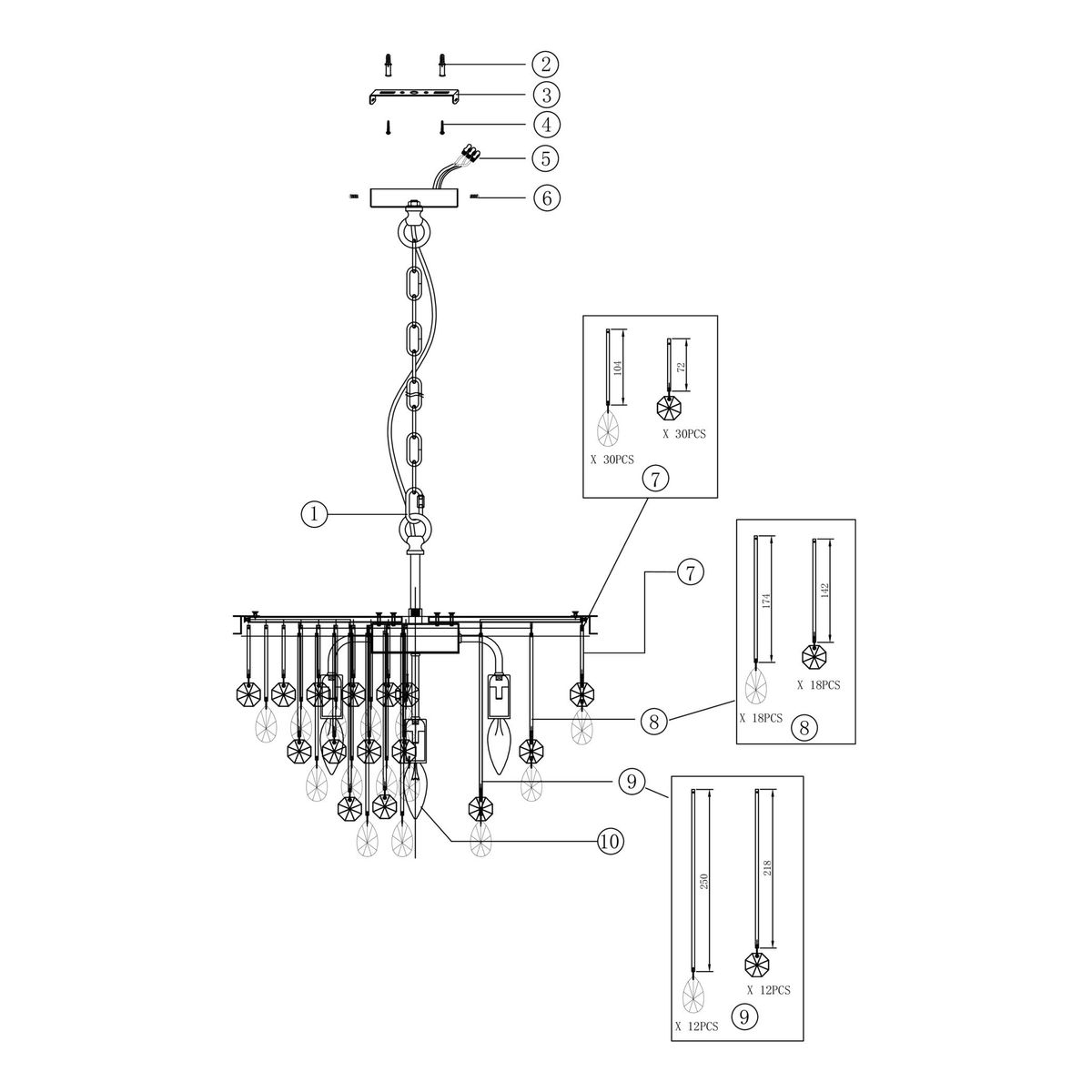 • Подвесные, потолочные люстры;