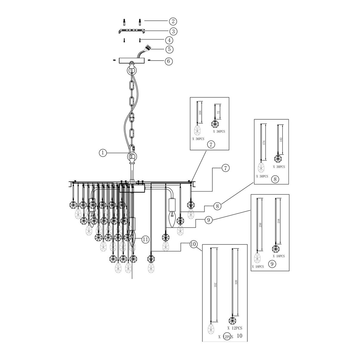 • Подвесные, потолочные люстры;