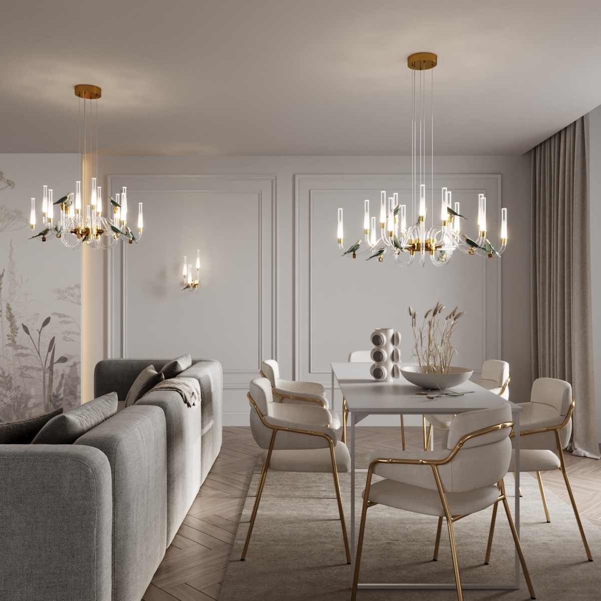 • Подвесные, потолочные люстры;