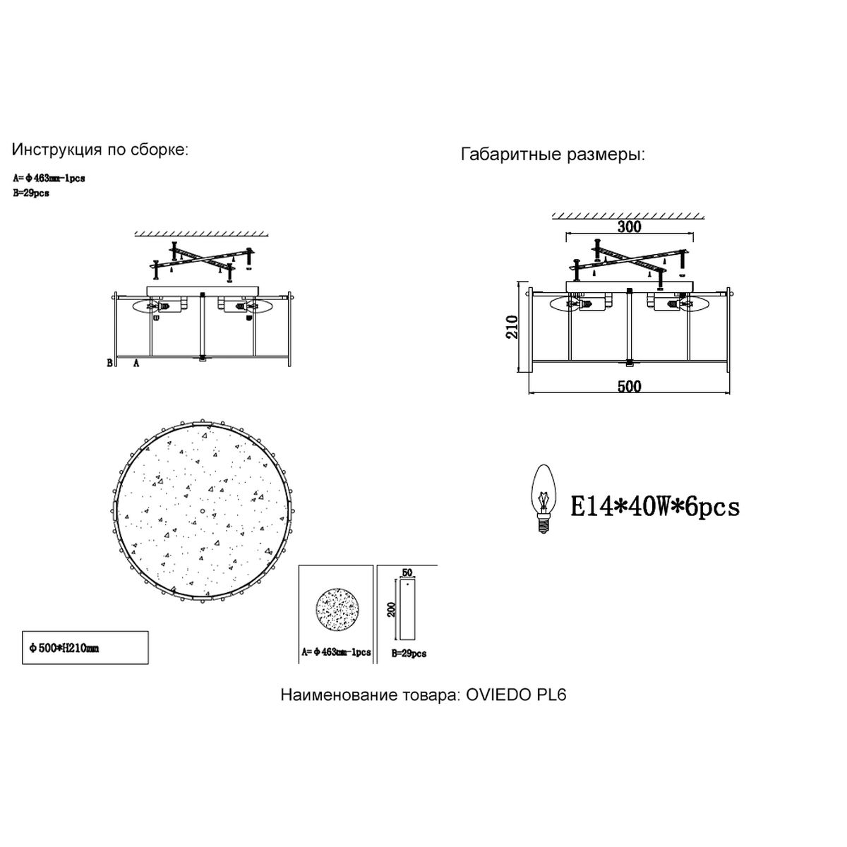 Потолочный светильник Crystal Lux Oviedo PL6 купить в интернет-магазине светильников Mitris.kz!