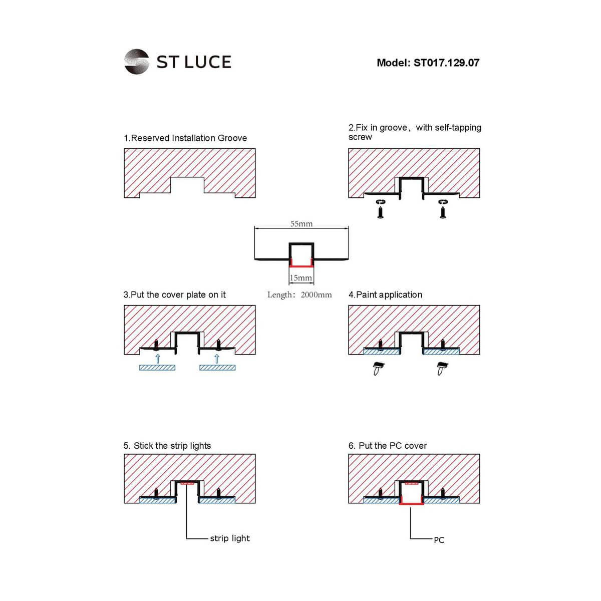 Профиль встраиваемый с рассеивателем ST-Luce ST017.129.07 купить в интернет-магазине светильников Mitris.kz!